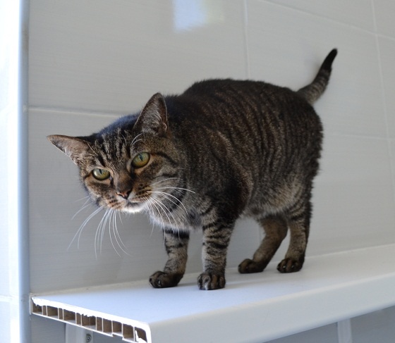 Эта кошечка чудесная. Можно сказать, что она такая невзрачная, маленькая, самая обычная, с тонким хвостиком. Но в душе она королева. Такое достоинство. Тихое, внутрь себя углубленное. Смотрит серьезно, ни одного лишнего движения. Ждет своего хозяина.