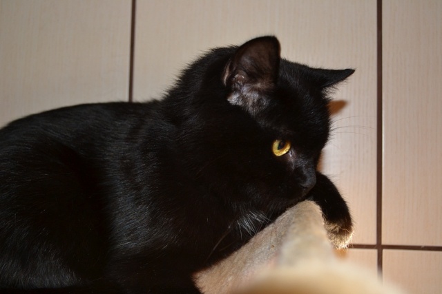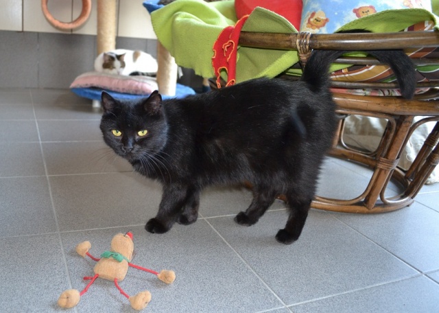 Прошел почти месяц. Макс обжился, чувствует себя уверенно. Любит играть с маленьким мячиком, плюшевой мышкой и лазерной указкой. Отзывается на свое имя! Очень умный и воспитанный кот. "