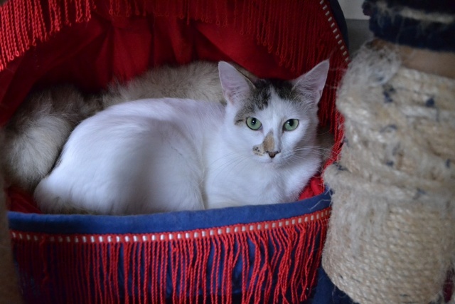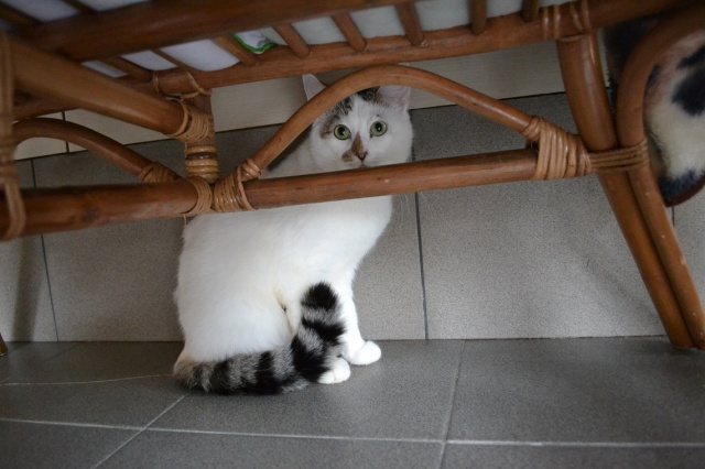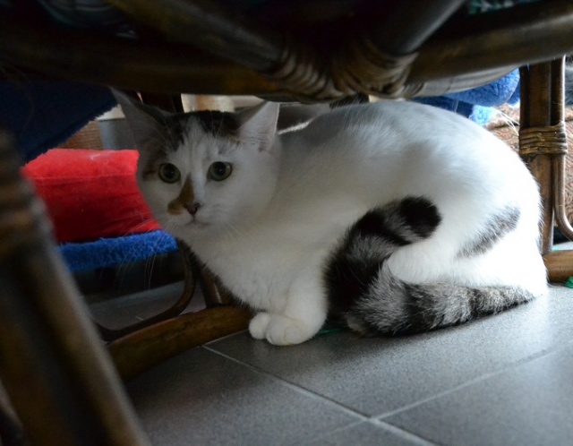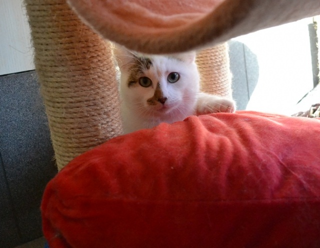 От былой пугливости осталось только то, что днём он любит спрятаться и где-то сидеть, ещё детей шумных не очень любит. А так вполне контактный стал, и можно его взять на руки, отпустить потом -- не убежит. Контактирует в основном вечерами. Хороший котик, рекомендую -- разумеется, не факт, что все коты смогут адаптироваться (со сложным характером), но точно можно утверждать, что в данном конкретном случае всё очень сильно изменилось в лучшую сторону. И да, агрессивности не проявляет, от детей просто прячется.