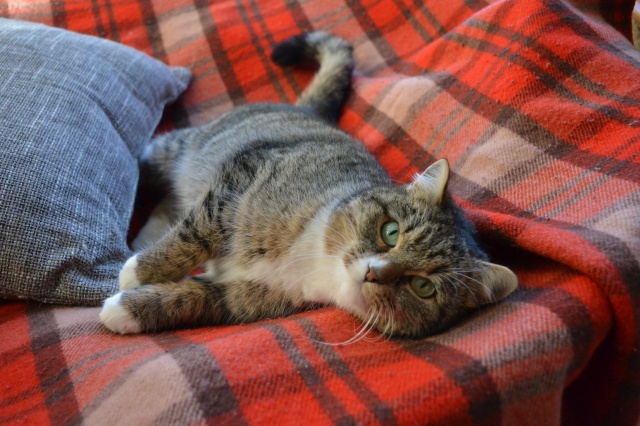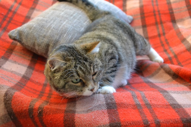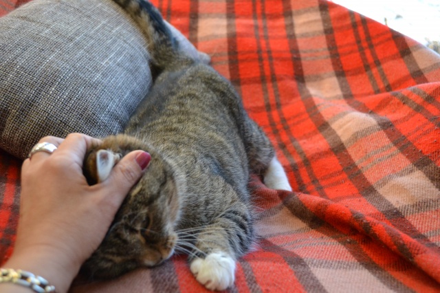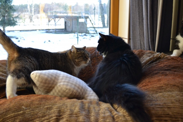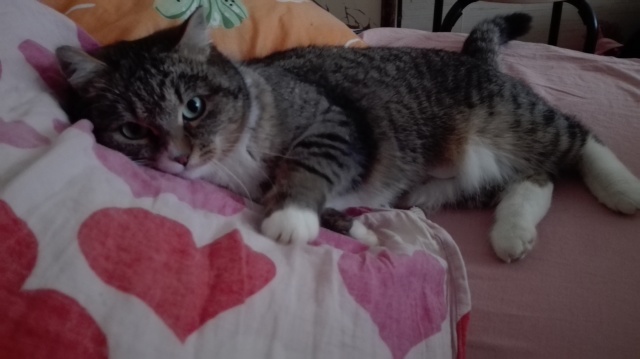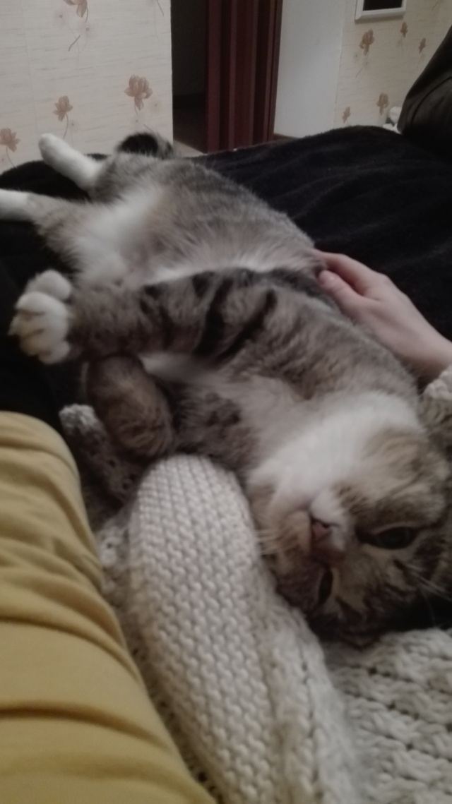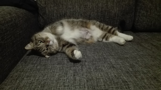 Meil läheb väga hästi. Võib öelda isegi,et super hästi. Esimesel päeval kui koju jõudsime siis algul käis ta natuke arglikult toast tuppa, uudistas aga selle peale ta pikalt aega ei raisanud vaid juba üsna kiirelt läks viskas ta diivani peale pikali. Pean mainima,et ma pole kunagi kohanud sellist kassi, kes ainult pai ja hellust tahaks ja veel niii tark on. Põdesin,et äkki ta e leia enda pissipotti ülesse või midagi, kuid ta teadis täpselt kuhu ta ennast kergitama peab. Sama ka kraaapimispuuga, mis eelnevalt oli juba seina peal. Mishka teadis ka seda kohe esimesel päeval,et sinna tuleb oma küüsi teritada. Olin meeldivalt üllatunud.