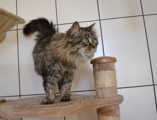 Я нашла эту кошку в подземном гараже на ул. Паасику. Она пошла ко мне на руки, была очень голодна, во время кормления шипела и бросалась на ноги, но на следующий день, поняв, что еды хватит, начала муркать и ластиться. Так что кошка, видно, домашняя. Если возьмете, не пожалеете.
