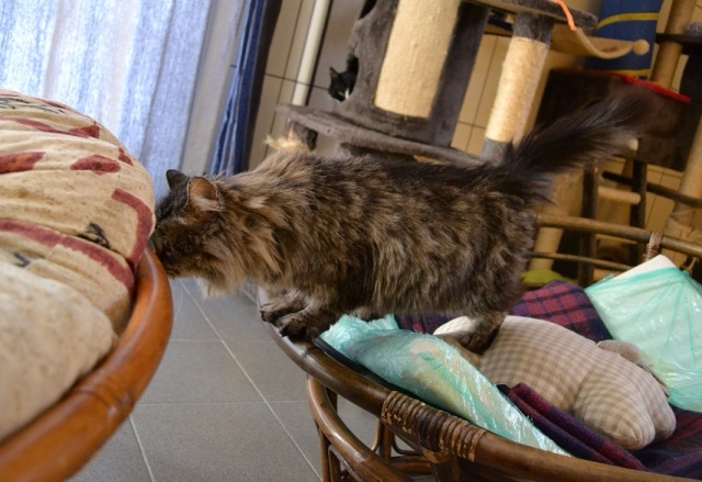 Как ожила кошечка и преобразовалась по сравнению с первыми фото, когда попала в приют, когда выглядела такой обреченной после бездомного голодного существования. Уже в компании других кошек,значит дружелюбная...