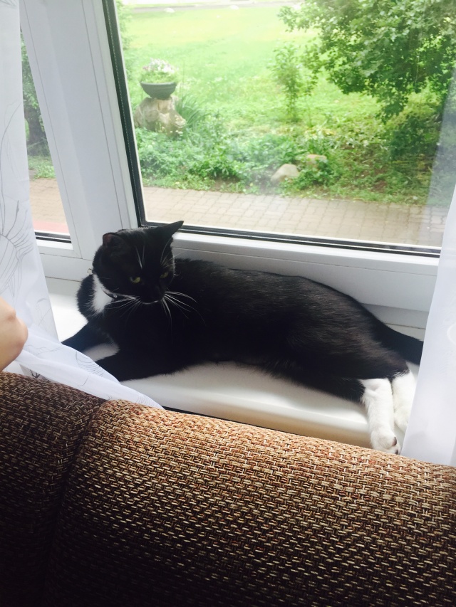 Кушает очень хорошо, играет, и место для сна выбрала сама, у окошка.