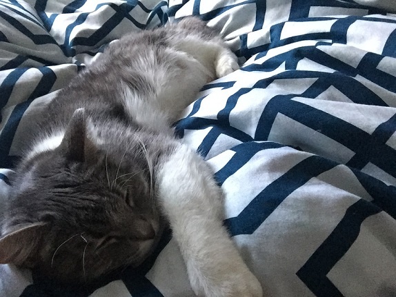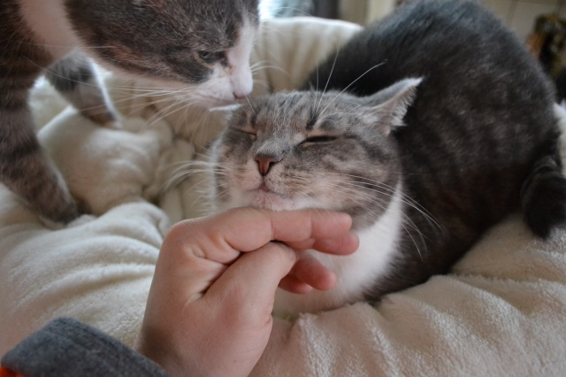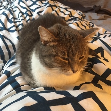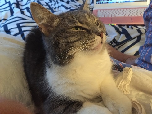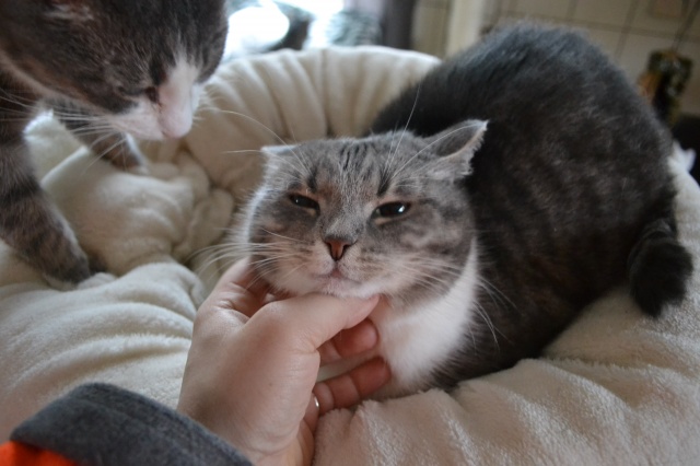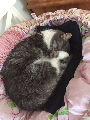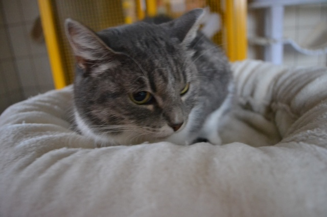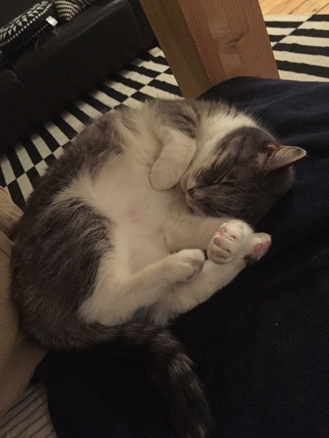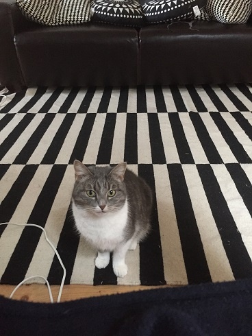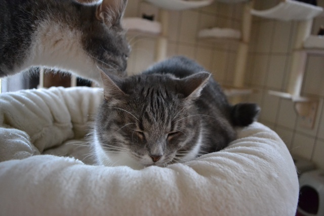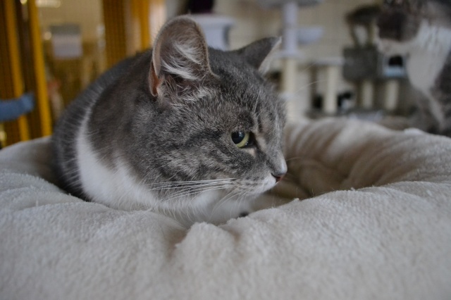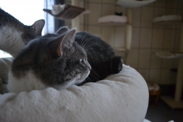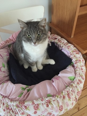 She is very nice, she was quiet in the beginning but now she is active with us, she likes playing. She likes a lot to relax on her pink pillow from the shelter. She is very friendly looking for us at the entrance when we are back home.