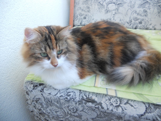 Прошло ровно четыре месяца как Софья пришла в нашу семью. Привыкала конечно сложно, приходилось её просто уговаривать по любому поводу, но моё терпение оправдало себя. Сейчас она ни на минуту не хочет от меня отходить, просто как верный пёсик везде за каждым шагом ходит за мной. У неё прекрасный характер, чистюля неимоверная, любительница поиграть и попрыгать, абсолютно не шкодничает, что очень меня удивляет и в то же время радует.Она оказалась очень пушистой особой,у неё абсолютно поменялась шёрстка, да и килограмчиков она под набрала не плохо. В общем я просто счастлива что у меня есть такая подружка, кстати она и поболтать не прочь, особенно когда что то выпрашивает))). Спасибо вам, за прекрасного питомца!!!