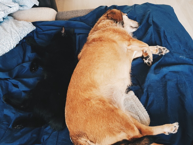Живут дружно! Не верила до последнего, что они ТАК хорошо поладят:) Общие интересы сближают!! Выселить маму/папу с дивана, утащить кусок колбасы со стола... : D Один раз сижу на диване, смотрю, Пума целый батон булки в упаковке(почти такого же размера как и она) тащит под диван, и Тиша за ней...шкодники еще те... пришлось отбирать и ругать детей! К порядку учат, чтобы ничего лишнего не было на столе, хаха!