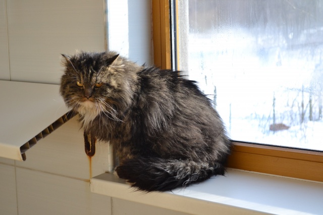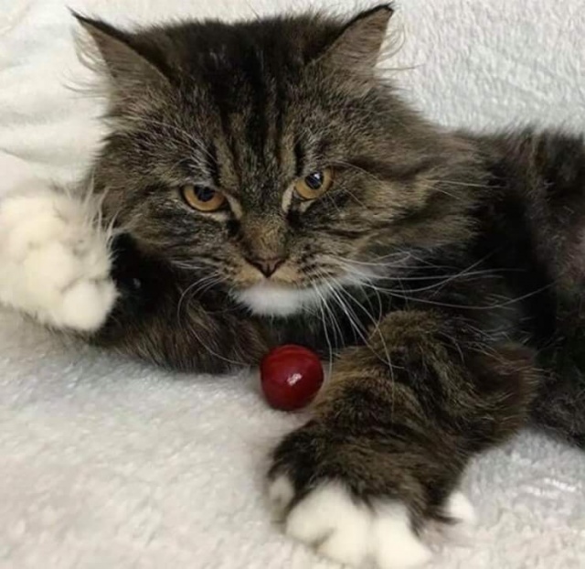 У него все хорошо и мы очень надеемся, что он счастлив. Он очень умный кот и со своим характером. Его любимое место дома, это диван и подоконник. Очень любит покушать и поиграть с игрушками, которые по ночам прячет, наверное, чтобы мы ему покупали каждый день новые.