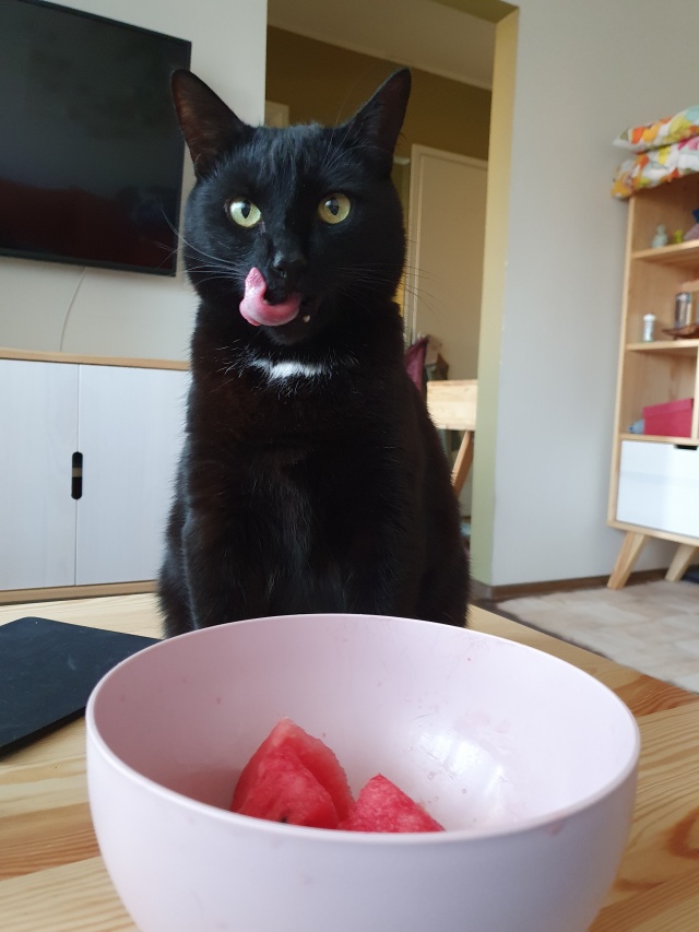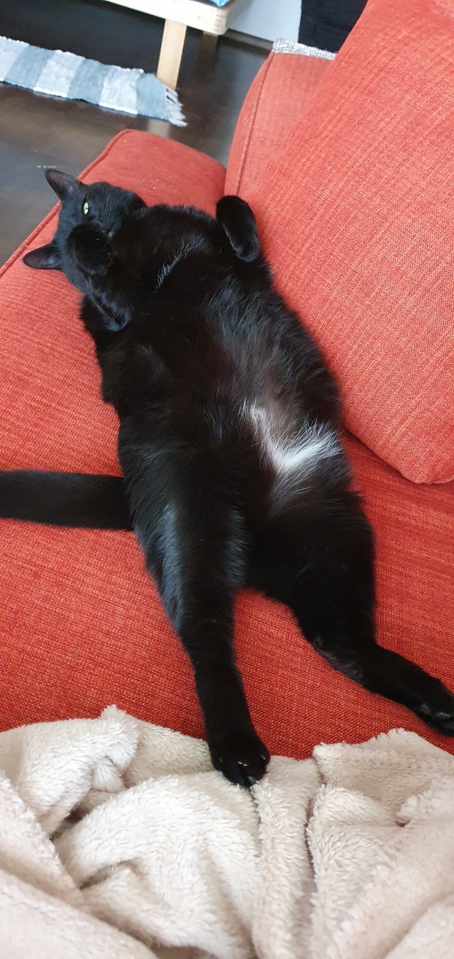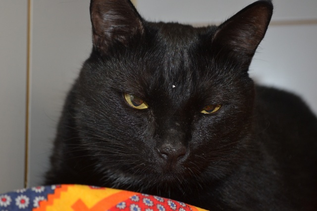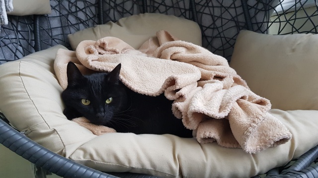 Спустя почти три года я хочу написать о том, как в приюте на Синиребазе я встретила лучшую кошку в моей жизни. В расстроенных чувствах после расставания я приехала в приют за котиком. Я была твёрдо уверена, что в доме нужен усатый мужчина. Присмотрев себе милого чёрного котика без хвоста, я поняла - он, и пока сотрудники приюта общались с другими будущими хозяевами, я бродила среди усатых-полосатых в ожидании своей очереди. Когда подошёл мой черёд, я начала искать своего безхвостого, пока случайно не вытащила из домика огромного чёрного желтоглазого зверя. Хвост был в наличии, да и размером усатый был раза в два больше искомого. Линяющее чудовище, шести с лишним килограмм веса, с утробным урчанием устроилось на моих руках и наотрез отказалось слезать. Так мы и познакомились с Норой. Умная, самодостаточная, бесстрашная (ну, если дело не касается пылесоса), безумно очаровательная, ласковая и бесконечно любящая меня кошка каждый день встречает меня у дверей и спасает из душа (а то хозяйка потонет, а кто кормить будет). Моё солнышко, моя зайка, моя радость. Радость, которой прощается всё. И "кусь" и "хвать" и ночной "тыгыдык".