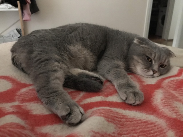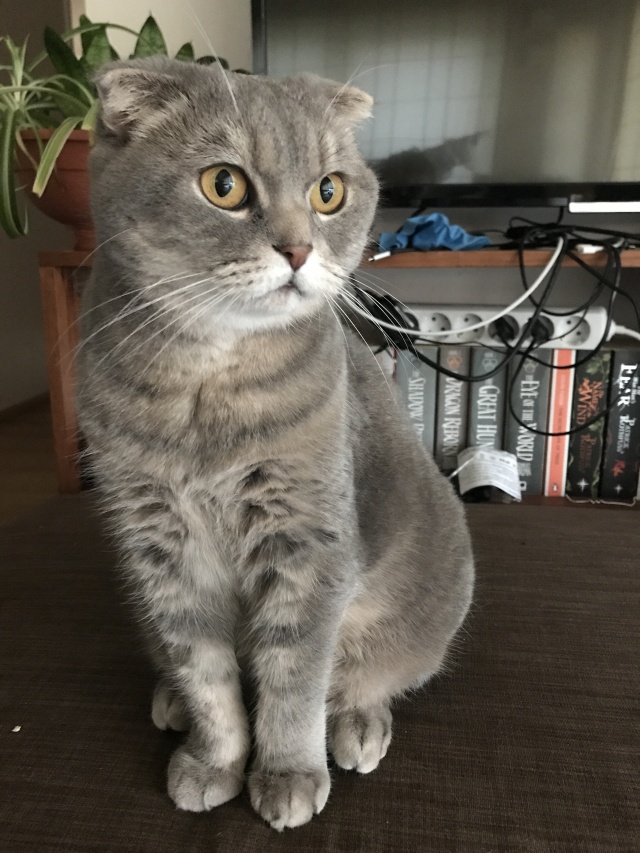 Ta armastab kassimaiuseid ja on meisterlik kütt, ükski mänguasi ei pääse tema eest! Süles magamine on igaõhtune luksus ja vastutasuks me saame kuulda hästi valju nurrumootorit.