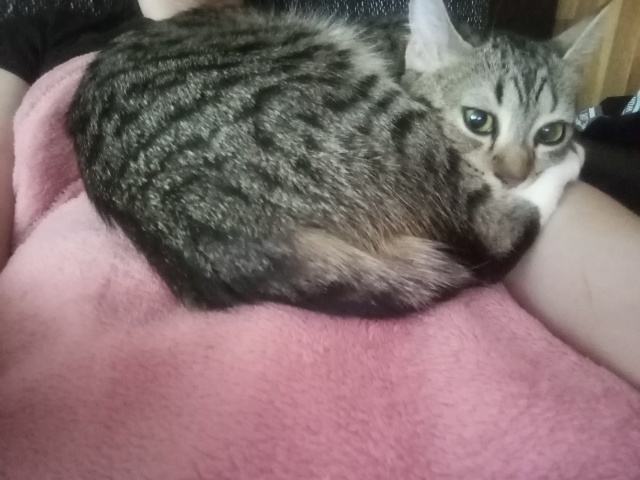 Kohe sõi, teadis kus liivakast on ja muidu tubli. Poeb sülle ja nurrub mõnuga.