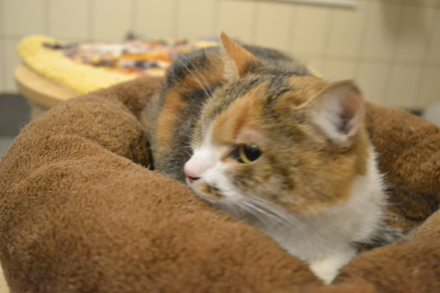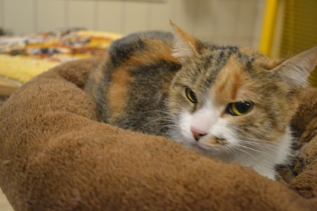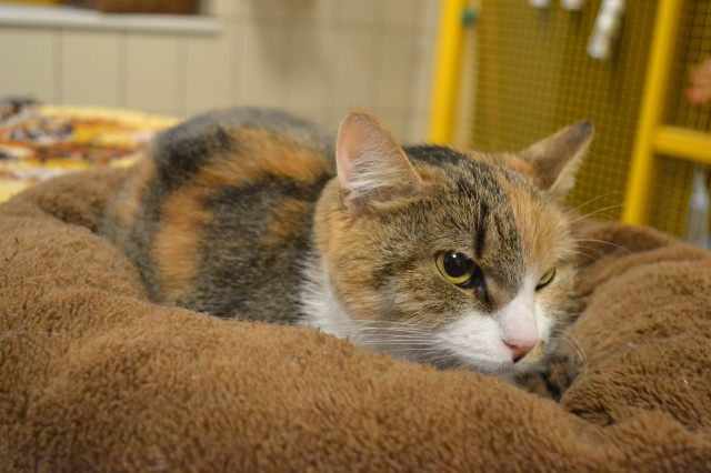 Musya - добрая кошечка! Это, от стресса, взгляд получился немного напряжённый. Окрас у неё необыкновенный! Цвета не яркии, как-бы, приглушённые. У добрых людей станет самой ласковой и доброй кошечкой ! Трёхцветочки приносят удачу. По себе знаю. Musya - желаю тебе самых хороших маму и папу !