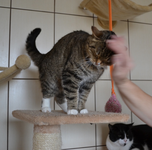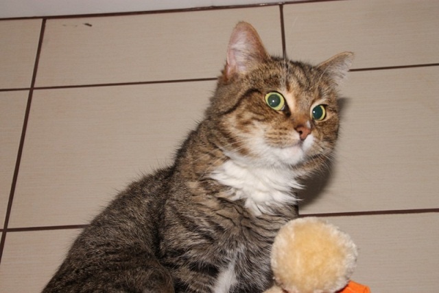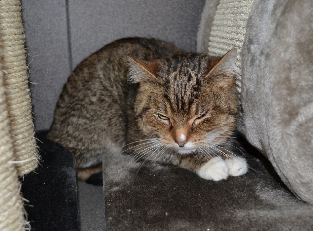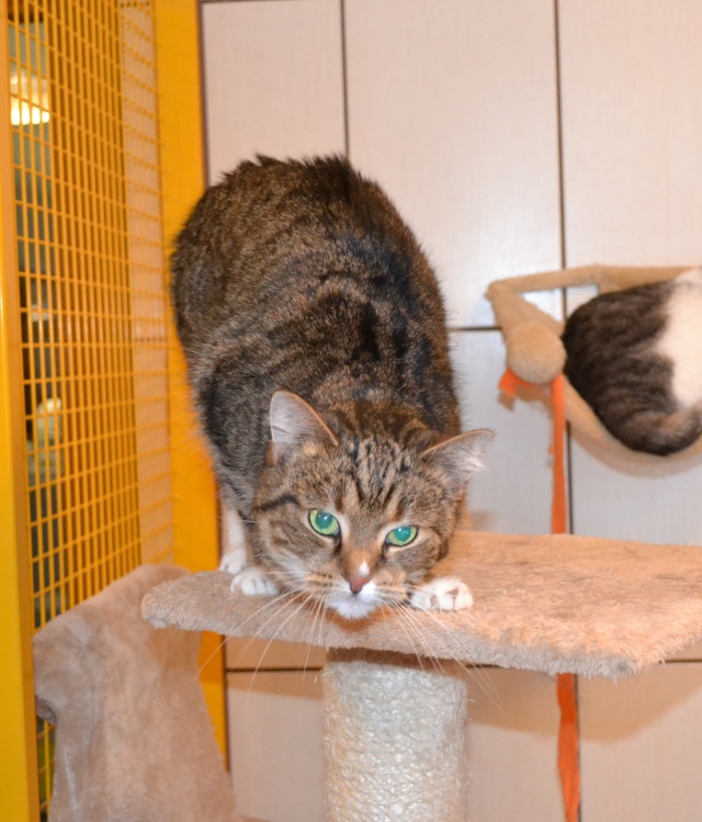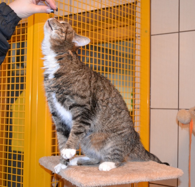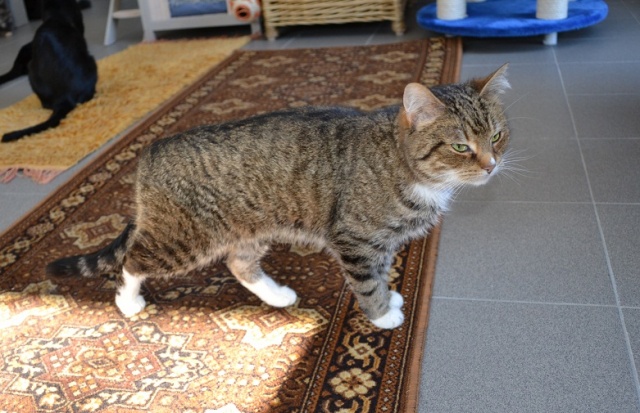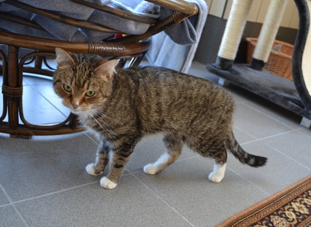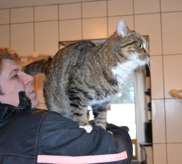 Kui see kass veidi rohkem kui aasta tagasi hoiupaika saabus, ei olnud tegemist just kõige sõbralikumat laadi kassiga - ta ei olnud küll metsik ega rünnanud, aga puudutamist talus kuidagimoodi ja süllevõtmist üldse mitte. Selline iseloomuga kass. Natuke on ta selliseks ka jäänud ja teiste kassidega koos elama ta ei sobi - ütleb ise oma liigikaaslastele, mis ta neist arvab, ning sõbralikult see just ei kõla. Inimestega suhtlema on ta aga hakanud küll, jookseb talitaja kutsumise peale nagu koer kohale, kasvõi teisest toast ja unesegasena. Uues kohas võtab ilmselt ka veidi rohkem aega harjumiseks kui ehk mõni teine kass, aga kui juba, siis leiab soovija temas hea ja suhtleva sõbra. Selleks peab ta muidugi koju viima ja veidi talle aega andma, sest kui aus olla, on tema järgi ka tuldud hoiupaika, et talle uut kodu pakkuda, aga tema on võõraste suhtes just mitte eriti heasoovlikult käitunud. Ka uus omanik peab end tema silmis tõestama, seega sobib väikest väljakutset armastavale inimesele ;)