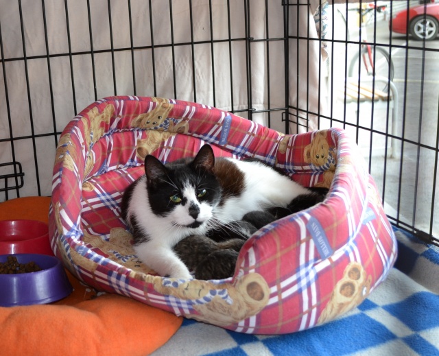 Kass jäetud 06.05 õhtul koos 4 vastsündinud pojaga pappkarbis hoiupaiga ukse taha.
