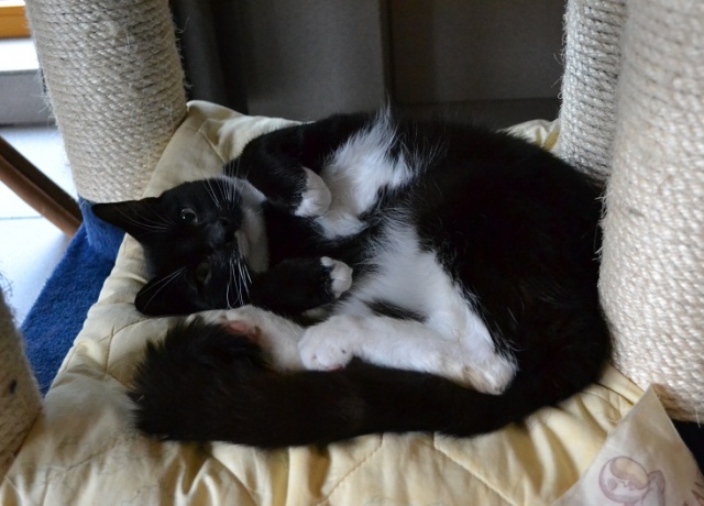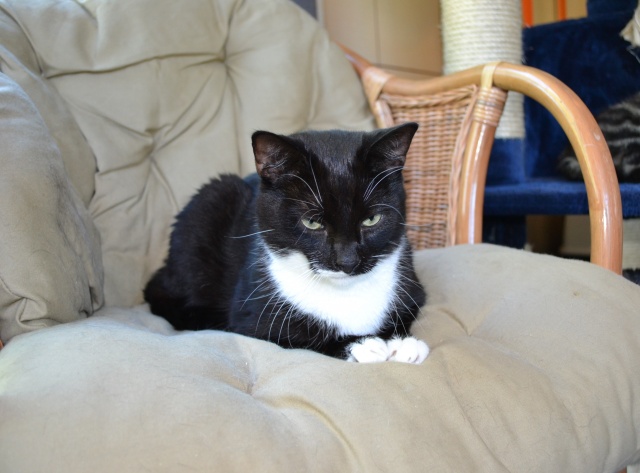 Sellest ei saagi aru, miks see noor ja kena kass nii kauaks hoiupaika peatuma on jäänud. Hästi mänguhimuline, talle ilmselt sobiks küll teise sama aktiivse liigikaaslasega koos territooriumi jagada. Väga ta sülle ei kipu ja kui üritada vägisi püüda, jookseb pigem eest ära. Sobib ehk inimesele, kes ei tahagi väga sülekassi, vaid kassi, kes oleks lihtsalt kaaslaseks, samuti võib soovitada teda üles leida neile, kes teisele kassile seltsilist otsivad.