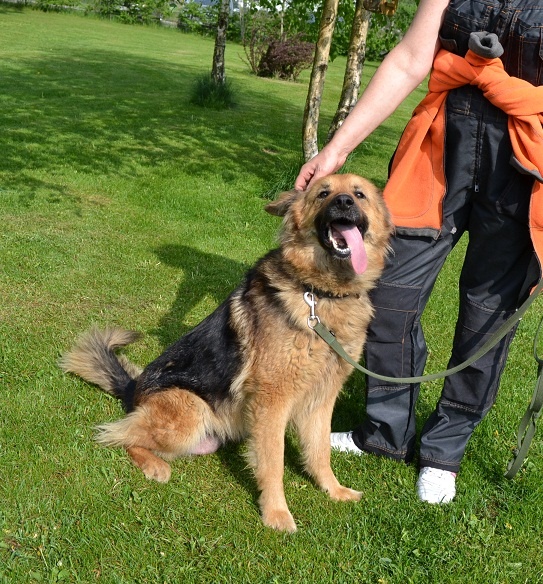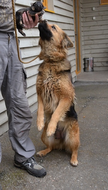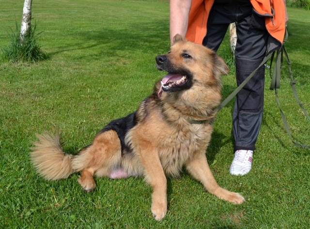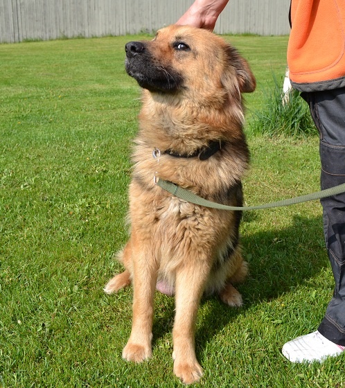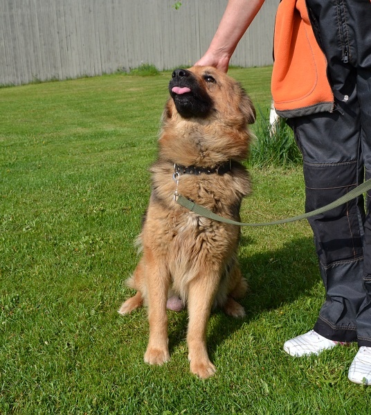 Jummmal, mis mureliku pilguga ta oma pisikeset valvab. Kõrvakesed on alandlikult peale ligi surutud ja malbe pilk. Arvatavasti hea iseloomuga ja sõbralik noor emme. Armsa olekuga koer.