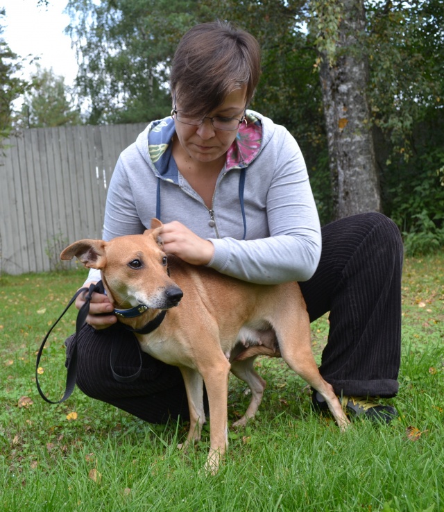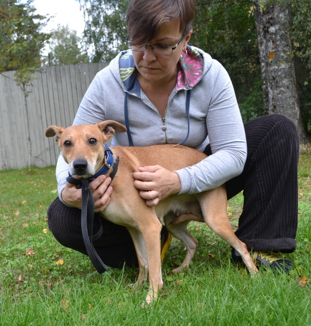Veterinaar - ja Toiduameti poolt omanikult võõrandatud koer. Kõik 10 koerad elasid vaid tubastes tingimustes, jalutamas nendega pole käidud ja inimestega suhtlema (peale omaniku muidugi) ei ole harjunud. Väljaheidete hunnikute kõrgus korteris, kus nad oma elu veetsid siiani, oli kohati pea meetri jagu ja koerad on muidugi ka üleni kirpudega kaetud. Püüame teha kõik, mis võimalik, et neid sotsialiseerida, õpetada rihma otsas käimist ja muud, aga kindlasti võtab see aega.