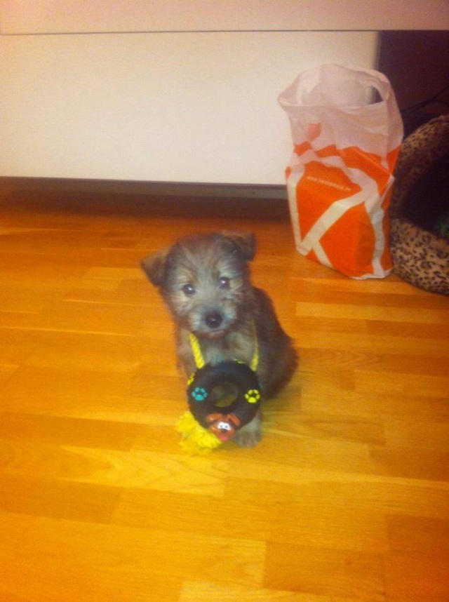 мы забрали в ноябре 2012 года. Его, вместе с братьями и сестрами, в количестве 7 щенков, нашли в лесу в коробке. Веник нас сам выбрал, когда проявил интерес из-за желтой решетки. Не влюбиться было невозможно, также, как и забрать его сразу домой (по медецинским показаниям)!!