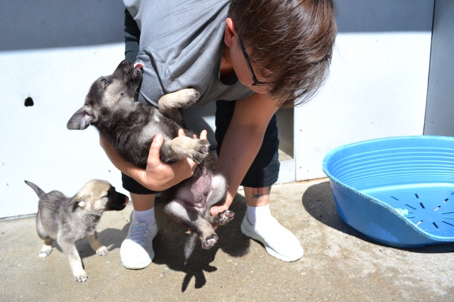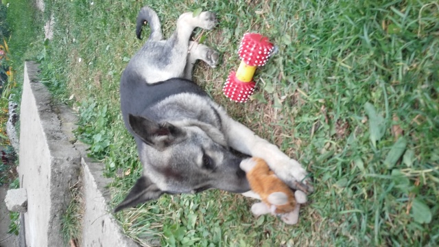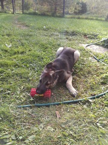Saadan teile vaatamiseks kuidas meie neljakuune Rexu ka kasvanud on. Armas, mänguhimuline ja sõbralik mürakaru. Õpetame jõudsalt rihmaotsas teda jalutama, ka väljaspool aeda ja igasugu mängimistrikke- nt: viskan midagi ja tema toob ära. Väga tubli õppija! Meil hea suur aed, kus ta saab joosta. Eriti meeldib talle porgandit närida, nagu väike jänes. Üleüldiselt toitub korralikult ja kõik on ilusti korras.