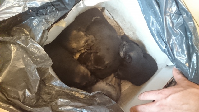 Jalrattur leidis Linnahalli tagant kutsikad, kes olid pandud kilekotti ja kotiga pappkarpi.