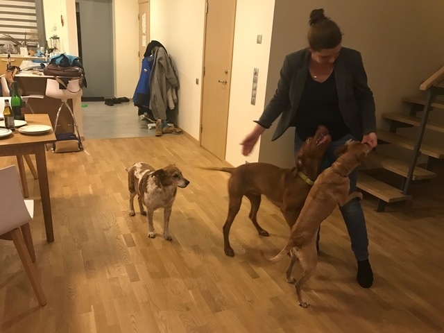Meil läheb väga hästi, Triste on ülitubli. Piiramata alal ei julge teda veel lahti lasta, aga koerteaias jookseb küll ringi nagu kutsukas ja mängib meelsasti teiste koertega. Järjest paremini kuulab juba ka inimest ja jookseb käskluse peale juurde. Kodus on voodi oma pesaks võtnud, aga tal on hea meel, et meie ka vahel ta pesas magamas käime. Sööb hea isuga, peame valvama, et ta Pätu toitu ära ei näppaks, sest Pätu on temast palju aeglasem. Öösiti kipub haukuma, kui naabrid uksest käivad, aga eks need talle ilmselt praegu veel võõrad hääled ja see a n ka ajaga vähemaks jäänud.