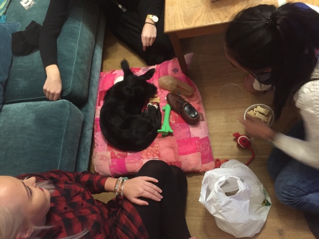 Olen Masha perenaine Sandra. Tahtsin teid kursis hoida, et Masha on selle ühe nädalaga muutunud väga elavaks, söögiisu on väga suur, mängib palju ja olen tema usalduse võitnud. Veel nõuab harjutamist üle ukseläve minek. Ta millegipärast kardab uksi ja nende ületamist. Teine asi mida ta veel kardab on õues mõõduvad inimesed.
