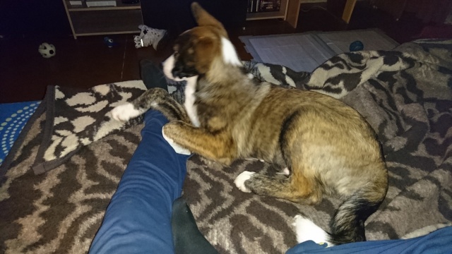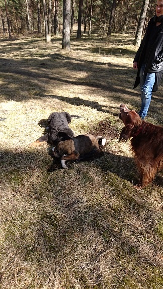 Нам почти 5 месяцев, весим 21,300. Питаемся хорошо, много бегаем, играем и любим хулиганить. По немногу учимся слушаться, уже знаем команды сидеть, лежать и ко мне, правда не всегда выполняем. Завели много друзей, даже есть приемные мама с папой. Уши встали сами собой, без помощи