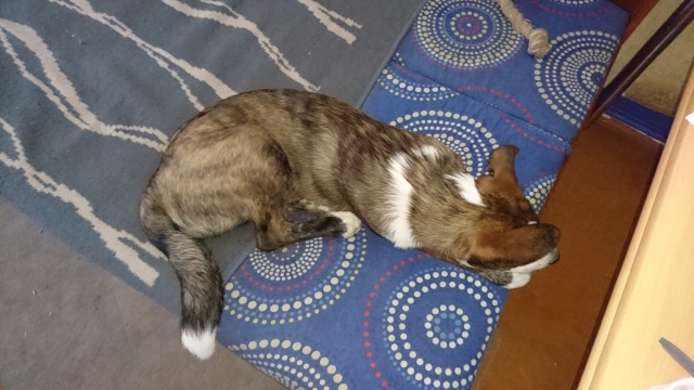 С утра кушаем творог с кефиром, немного сырого фарша и овсяными хлопьями. На обед кушаем говяжье сердце или печень с овощами и гречкой. На ужин варёная курица с индюшатиной или уткой с овощами и гречкой. Много спим и бегаем. Гулять больше 3 раз в день не хотим.