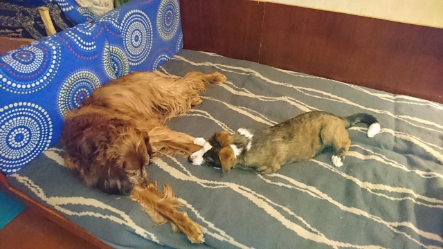 Кушаем отлично, уже привыкаем ходить в туалет на улице. Дома и на улице хулиганим и уже весим 17,100 кг.