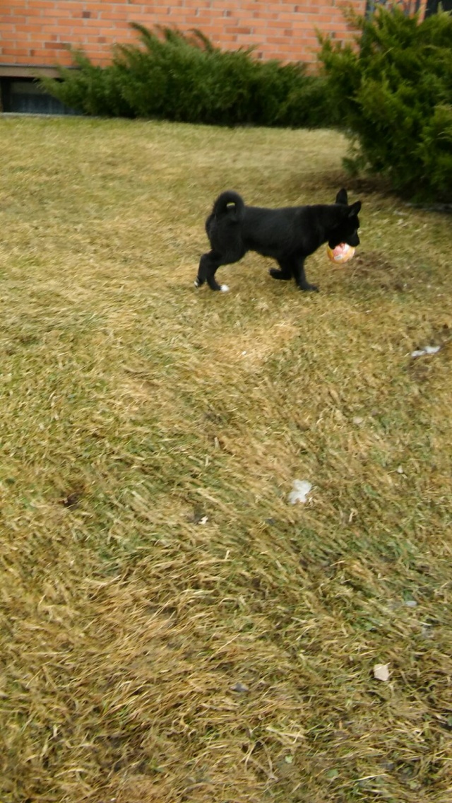 Малышка очень активная и смелая! Она сразу подружилась со всеми- и с нашими собачками и с соседскими. Она само очарование! Хулиганит и радует нас)