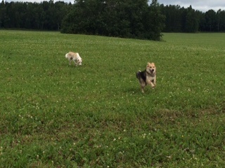 Lost of fun, lots of chasing and lots of play, happy dogs.