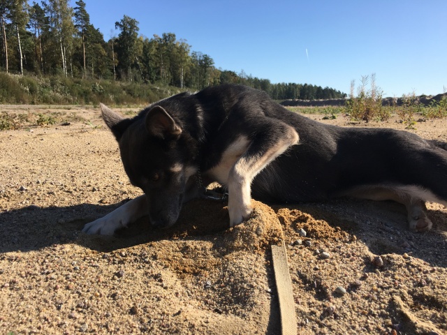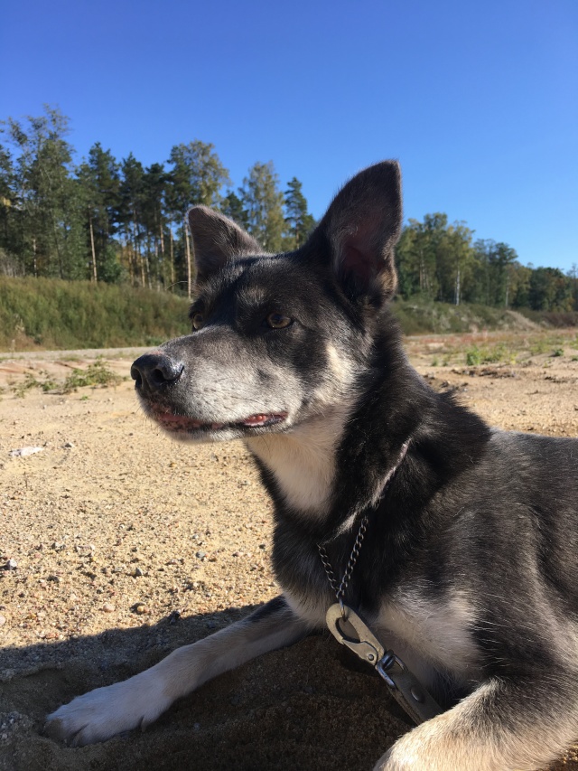 Очень ласковая, с ней сразу идет контакт, только стоит погладить, заглядывает в глаза, прижимается, идет рядышком. А иногда прямо с таким гордым видом, что она идет рядом с "хозяином", и постоянно ловит при этом взгляд. С удовольствием бежит на "ко мне" и весело дает лапу без всяких вкусняшек. А как она носится и играет!!! И дома и в лесу будет прекрасным компаньоном. Очень доверчивая, общительная, ни капельки дикости или страха. Фигурка ладненькая.