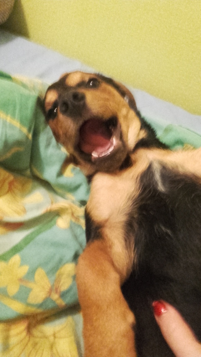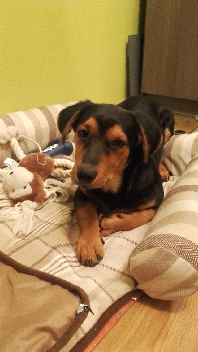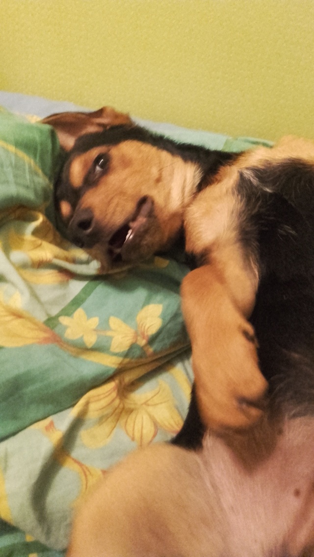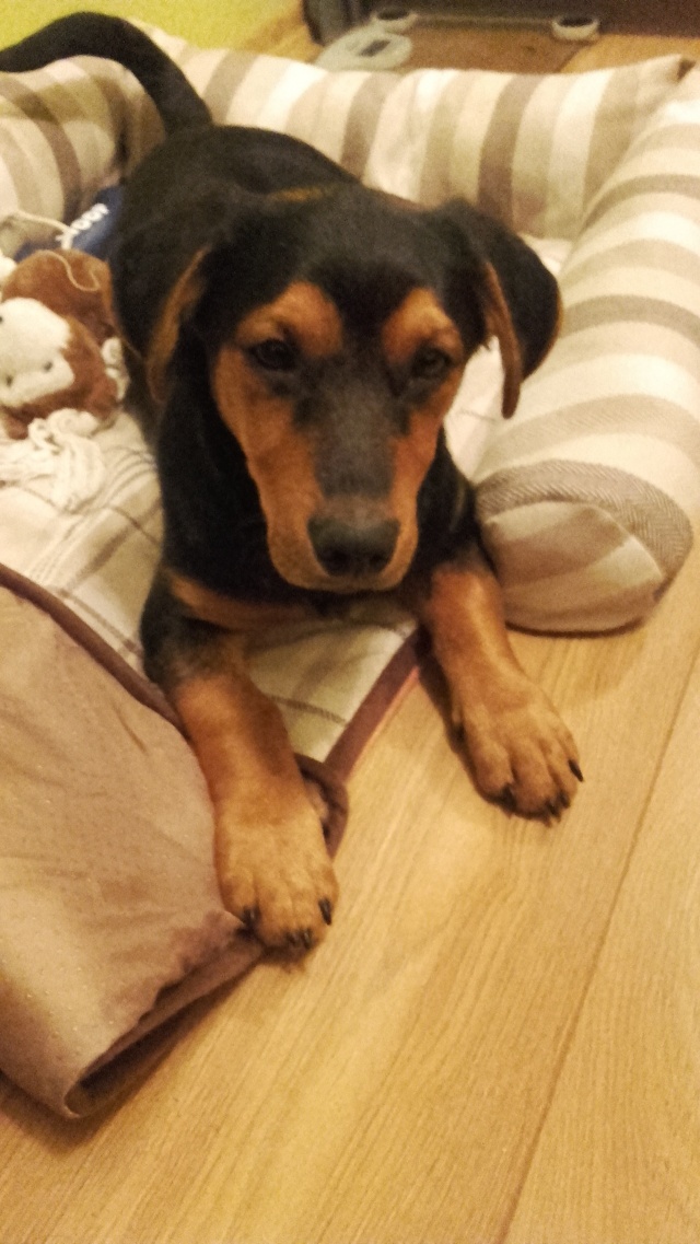 Здравствуйте. 8 сентября Гоша нашел свой новый дом. Он умница, очень послушный и ласковый. Хотя и не без шалостей. Гиперактивность прошла на второй день, хотя поиграться и побегать за котом ( у нас кот есть) это самое лучшее занятие. Кот принял его на второй день, уже спокойно спят рядом. Стал хорошо гулять на поводке, спокойно кушает. Без поводка не убегает, команду ко мне выполняет сразу и с радостью))). А главное он чувствует, что у него есть настоящий дом, где его любят. Спасибо вам. Наталья