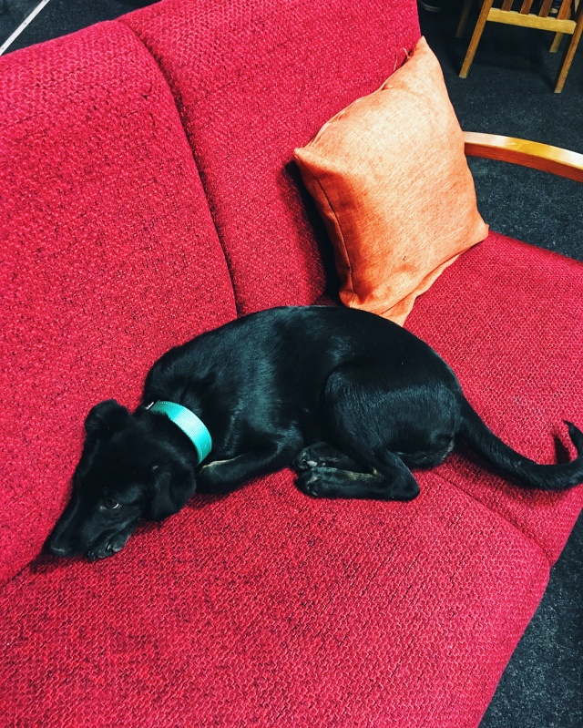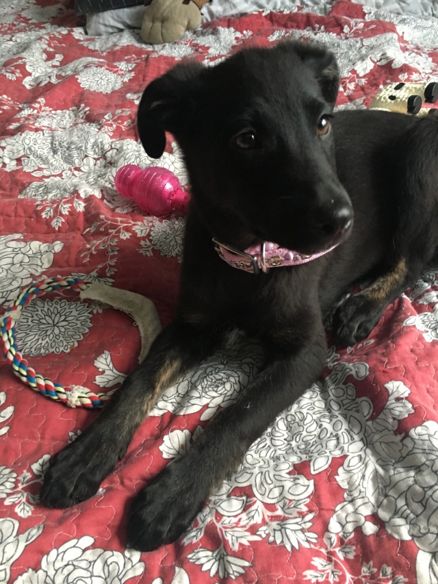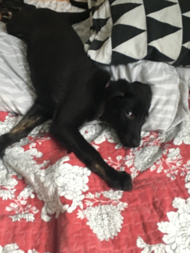 Saadan teile mõned pildid täna koju jõudnud Lolast. Kutsa tunneb end uues kodus väga hästi - muudkui mürab :)