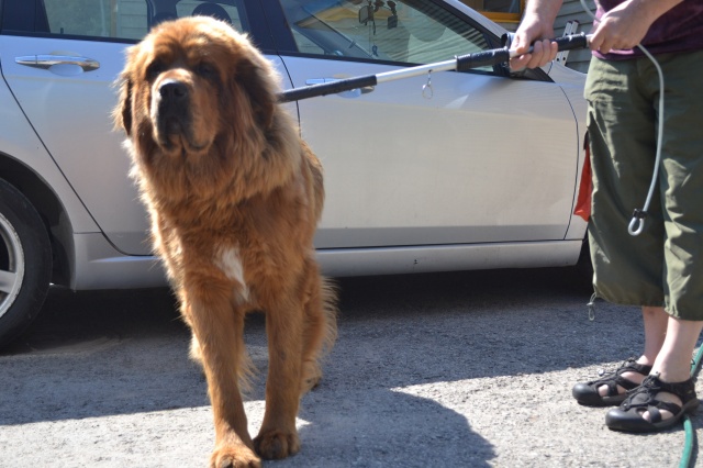 собака действительно неуправляемая. совершенно серьёзно и то, что он бросается, кусается и тд. здесь мы говорим не о собачке в 10-15 кг, а кобель, весом в почти 60кг, который прекрасно чувствует свою силу и знает, что сильнее тех, кто пытается его воспитать.