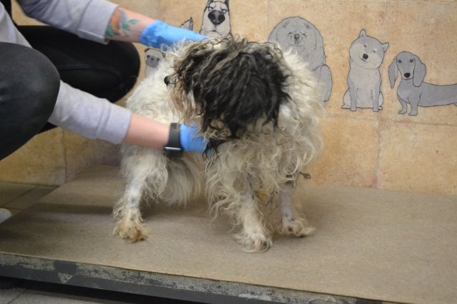 уже причесали ещё в приюте :) наша Лара (директор приюта) очень любит приводить таких собачек в порядок. Домой уехал бритым и очень ухоженным :) сейчас только отращивать себе новую красивую шерсть!