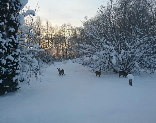 Спасибо за Молли! Чудесная девчонка и очень умная. Ни разу не написала и не накакала дома. На улице выбирает укромное место, очень интеллигентная :) Ничего не подбирает на улице. Когда приходим домой сама садится на коврик около двери и ждёт пока снимем курточку. Ладит с кошкой. Меня понимает с полуслова. Приносит столько позитивных эмоций, что мы даже сами не ожидали. Прилагаю несколько фото: Молли в день приезда и на следующий день. Косули в саду моих родителей и наша Молька для сравнения - развеселила всех, как косуля-карлик со своими ушами.