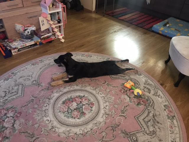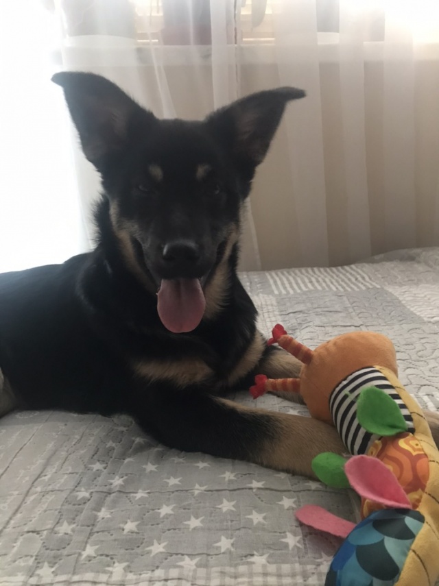 "Сегодня ровно неделя как Маслина( мы назвали её Боня ) живёт с нами,она очень изменилась, играет, рада когда идём гулять, все дела делает на улицы ) встречает хозяев , и кот уже привык. Мы очень рады что у нас она появилась. Знает команду « сидеть » Зубки начинают меняется, всё грызть хочет. Огромно Спасибо Вам"