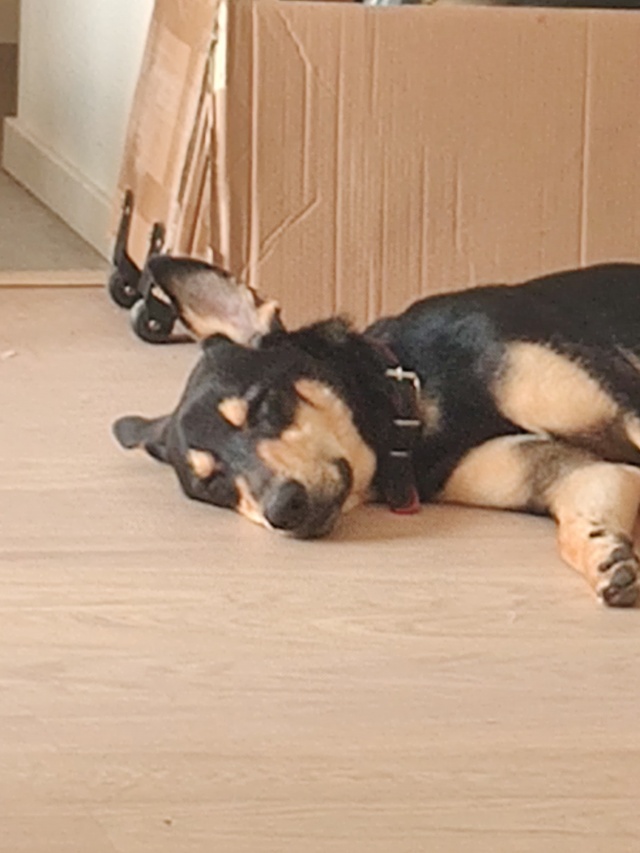 Ta on praeguseks ilusasti harjunud - rahulik, vaikne ja kuulab kenasti sõna. Mängima õpib ka, käsklusi tuletame talle meelde ja saab hästi hakkama. Meid tahaks kaitsta küll, kui mõni ehitaja uksele koputab :) .