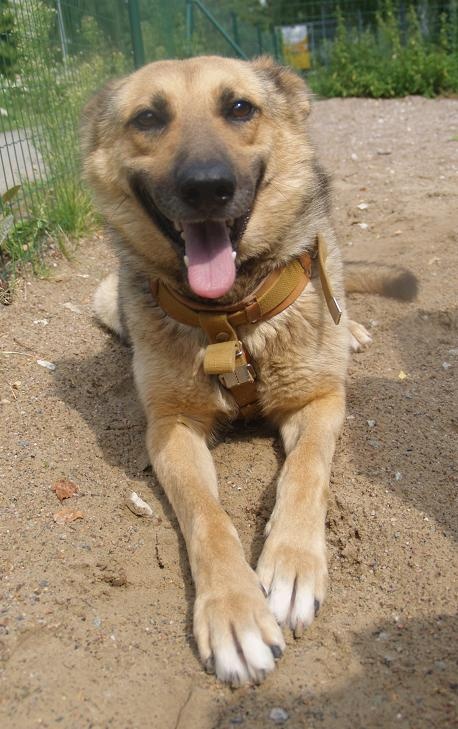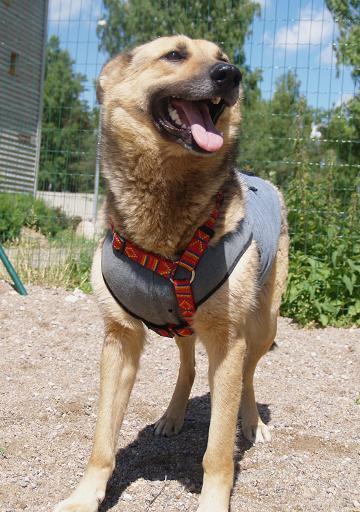 Päris ausalt on tegu väga-väga heasüdamliku koeraga, kes tegelikult tuttavatele nägudele liputab saba ja poeb ise peaga käe alla. :) Vajab aega ja tegelemist.