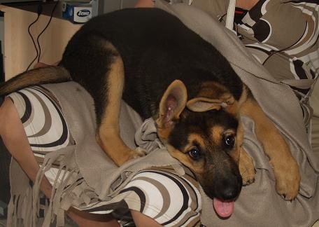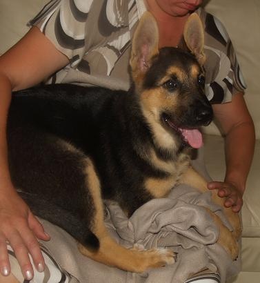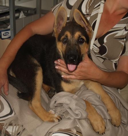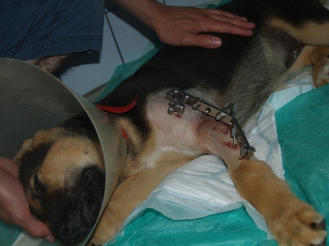 Esikäpp oli katki (tehtud röntgen). Kutsikale oli tehtud esikäppa operatsioon 21 juulil, 2011.