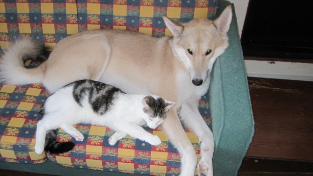 Siin on pildid meie koertest. Hele koer on nimelt Jiri ja kutsika nimeks sai Peppi. Nad saavad hästi koos hakkama ja kassidega ka.