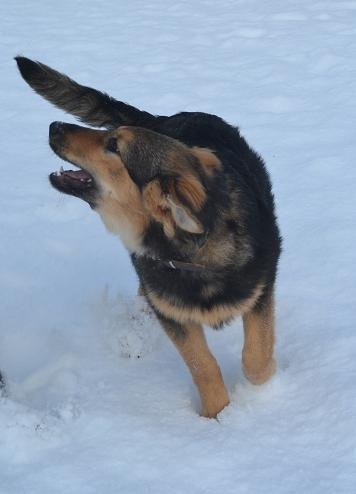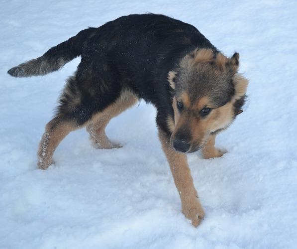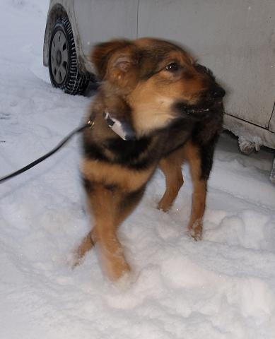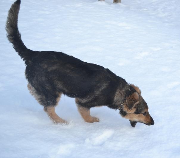 Kutsa saab rihma otsas jalutamisega kenasti hakkama ja tundis tänasest sügavast lumest aina rõõmu.