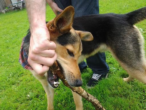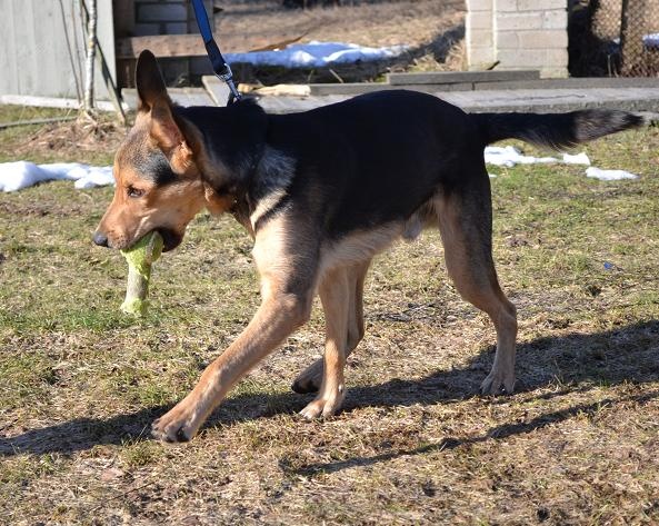 Vajab palju tegelemist. Rihmas käib suhteliselt keeruliselt. Ta ei tiri metsikult ( Tal pole eriti palju massi ka taga ), aga siiski tahab olla inimesest eespool ja rihm on üldiselt ikka pingul.