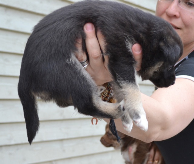 Tegu on siis Mõshka kutsikaga. Kui aus olla, pole me eales näinud niivõrd hüperaktiivset kutsat, kui seda on meie Bella. Ei püsiks ta isegi purgis paigal. :) Ta on visa haukuma, kui märkab eemalt teisi koeri. (tahaks ju mängida). Samuti on ta suur laste sõber..
