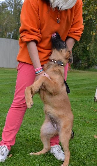 Praegu käime õues rihmaga ja õpime piire ning meie ehitame talle mõnusa kuudi, kuigi siiani tundub, et vihma pärast Ta väga ei põe, pigem naudib Eesti ilma. Tundub, et Talle väga meeldib ja on rahul siin, eriti meeldivad Talle õunapuu all olevad õunad! :)