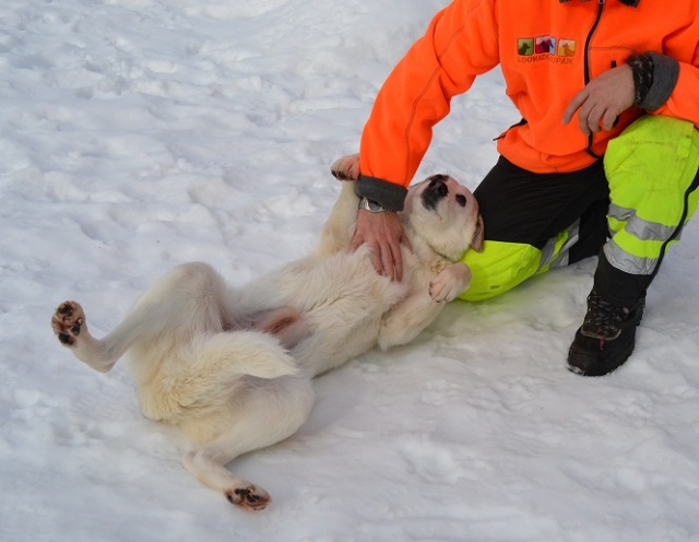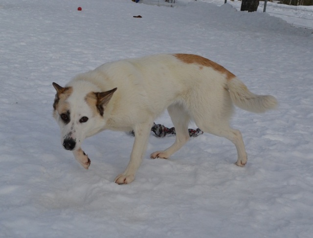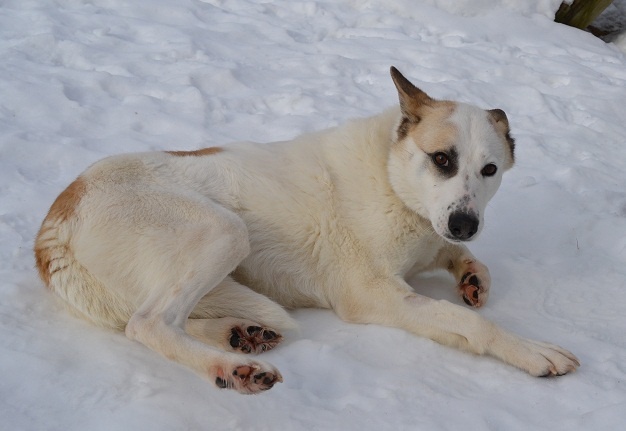 Какая лапочка эта собака, какая она ласковая девочка, все время нас облизывала, обнималась во время наших прогулок, ластилась! Она просто прелесть, такая прямо девочка принцесса! А как она целуется:))) я за время прогулки была просто расцелованна этой хорошей девочкой! А какая же она красивая, белая, белая. В темноте освещала нам путь своей белой курточкой:)))