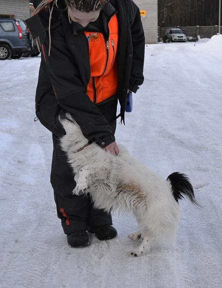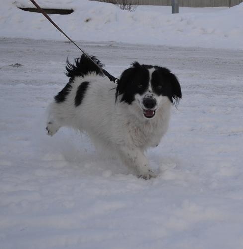 See koer käis mul aia taga ja lõpuks reedel (01.02.13) ronis üle aia sisse ja elaski mul majataga. Koera kodu on Saue linnas, sest olen kuulnud kohelikelt et nad umbes teavad kus tänavalt see koer hulkuma hakkab. Kummaline on et omanik ei muretse koera puudumise pärast, kui see rahulikult minu aias elas. Panin ka Saue kauplustesse info (pildiga) ülesse, et koer ootab oma peremeest Tallinna varjupaigas.