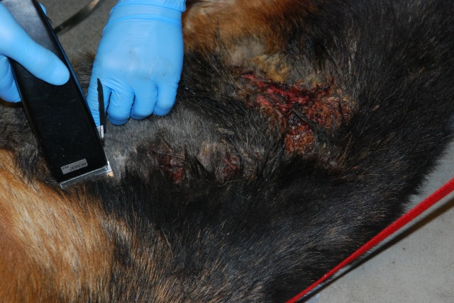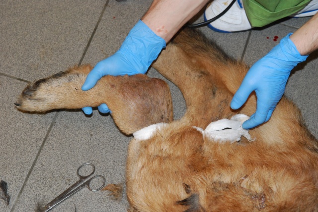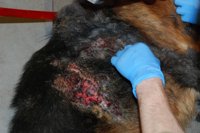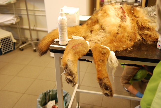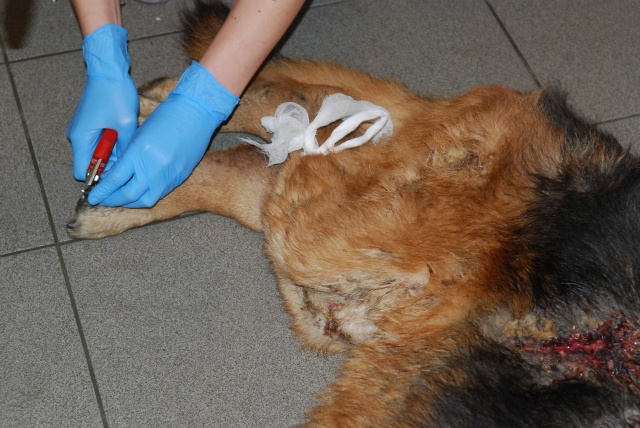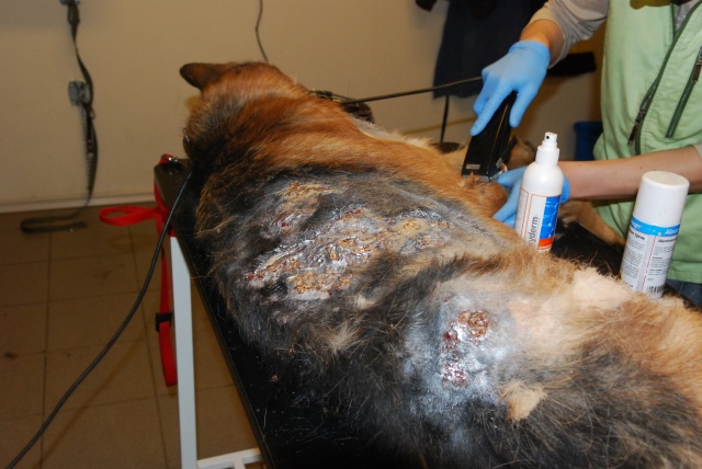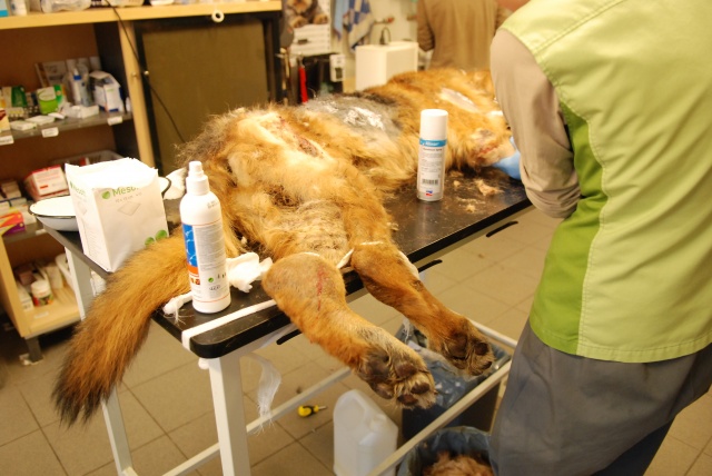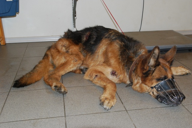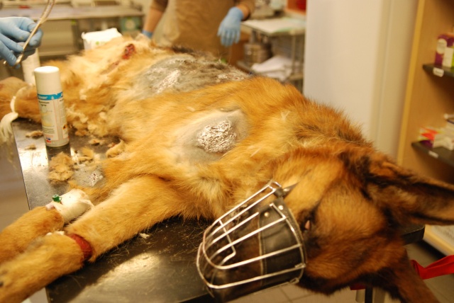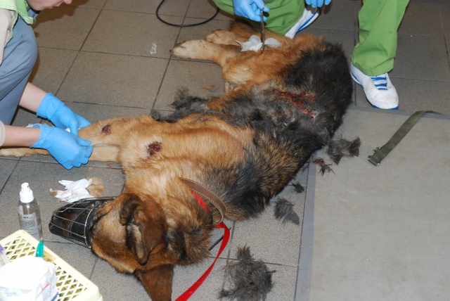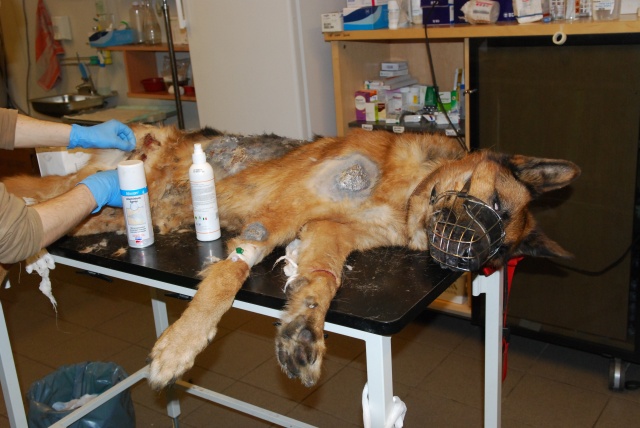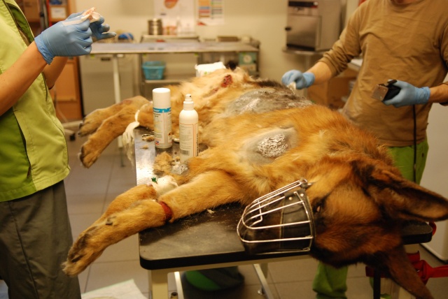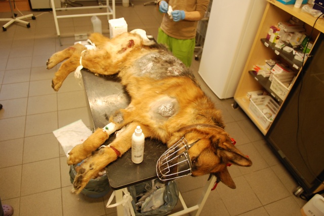 Оказываем ей первую вет. помощь, будем восстанавливать. Очень красивая собака, у неё хорший потенциал, надеемся, что она оправится! Надеемся, что незлая. Акт осмотра собаки нами будет тоже составлен (в дополнение к акту об изъятии собаки, который составил Вет. Деп.).