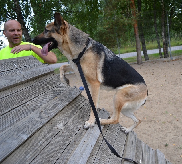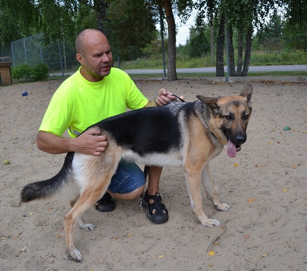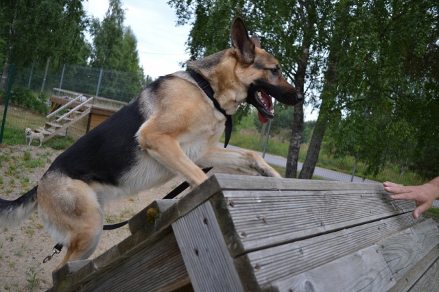 to hmm.... see kutsa ei ole kindlasti sakslane. Ehk ristsugutis mõnest "laadsest" , kuid kindlasti mitte sakslane. Armas kuts on, kuid omaniku olukorrast kuuldes on see hetkel (just nimelt hetkel) ainuke lahendus.