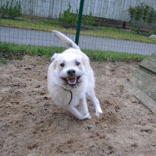 Теперь глаза уже не грустные! Сгусток радости, а не собака! Скорее бы в хорошие руки!
